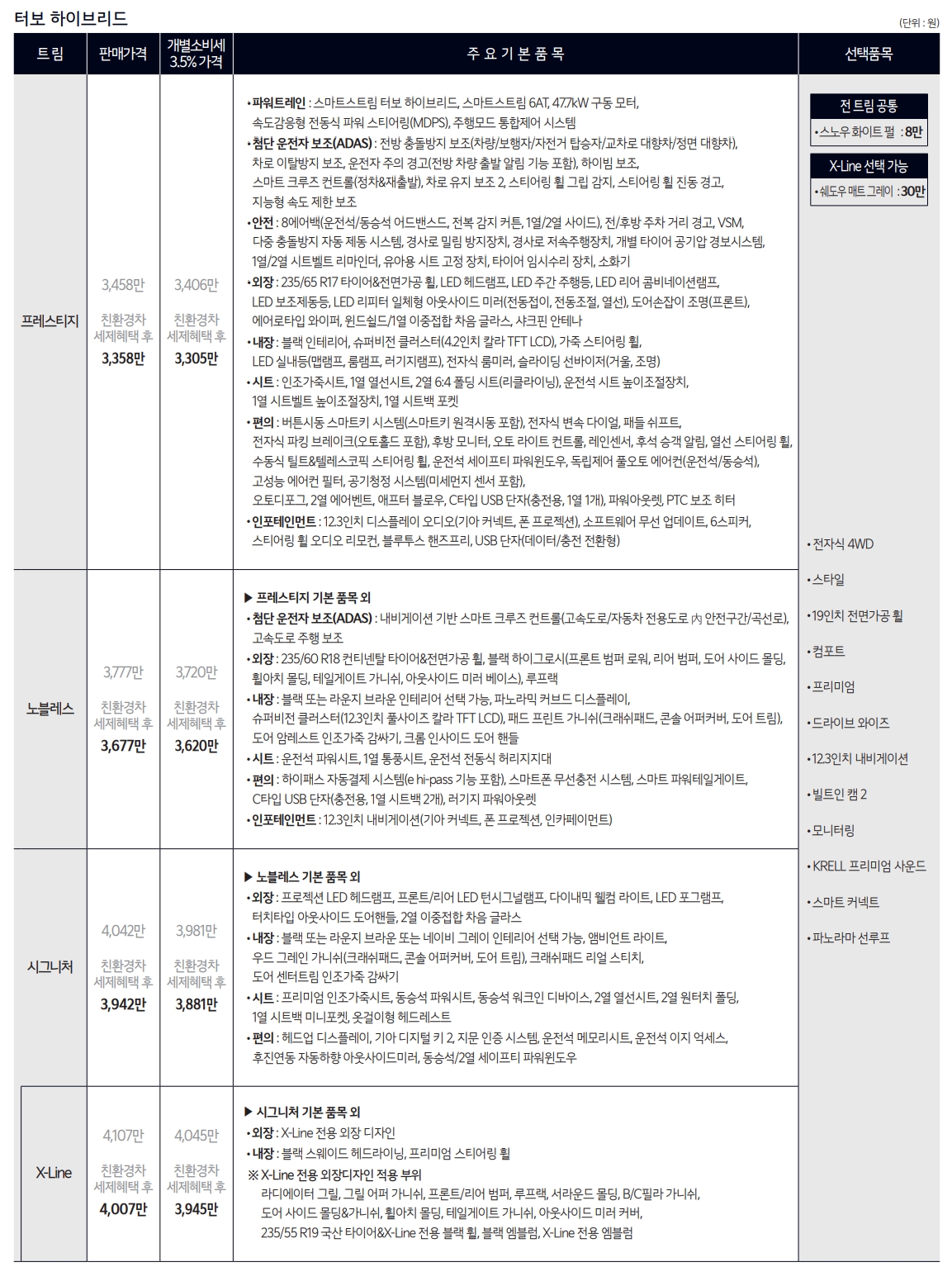| 시그니처 X-Line (AWD) | 4,168만 원 |